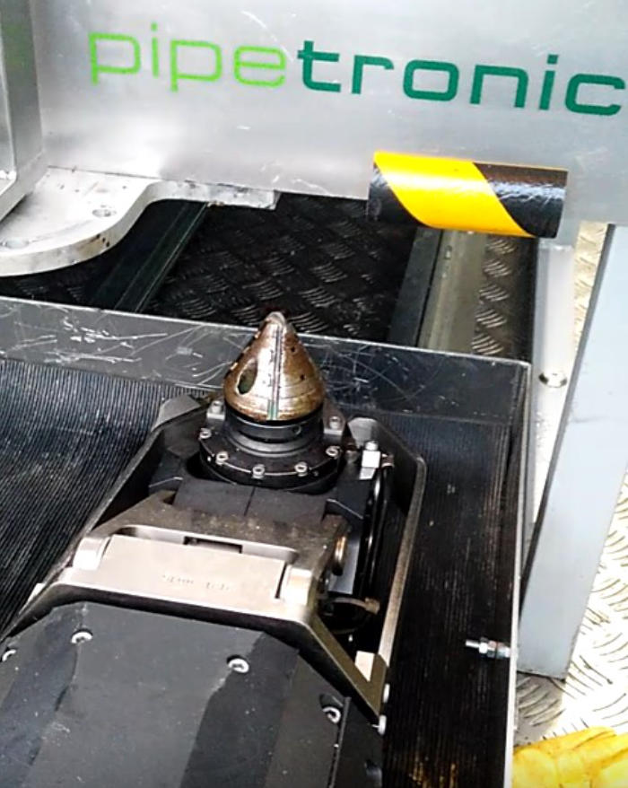 Fräsen des Rohrquerschnitts unter Video-Kontrolle.